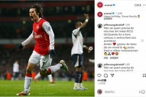 阿森纳官方社媒晒出罗西基效力球队时期的照片,配文:“生日快乐,罗西基。”