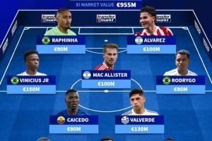 南美足联最贵阵容: